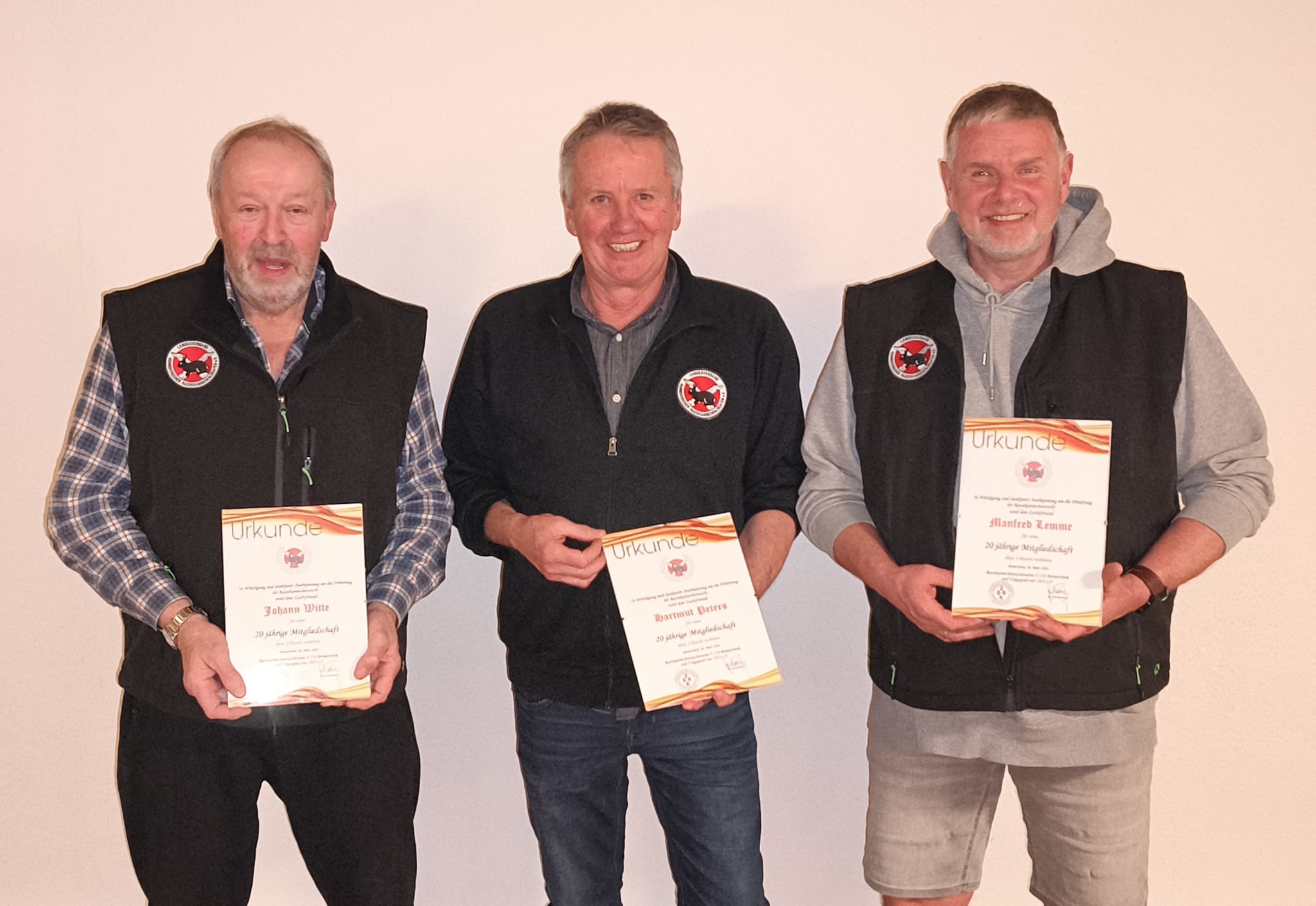 werden. Für 20-jährige Mitgliedschaft wurden Manfred Lemme, Johann Witte und Hartmut Peters
